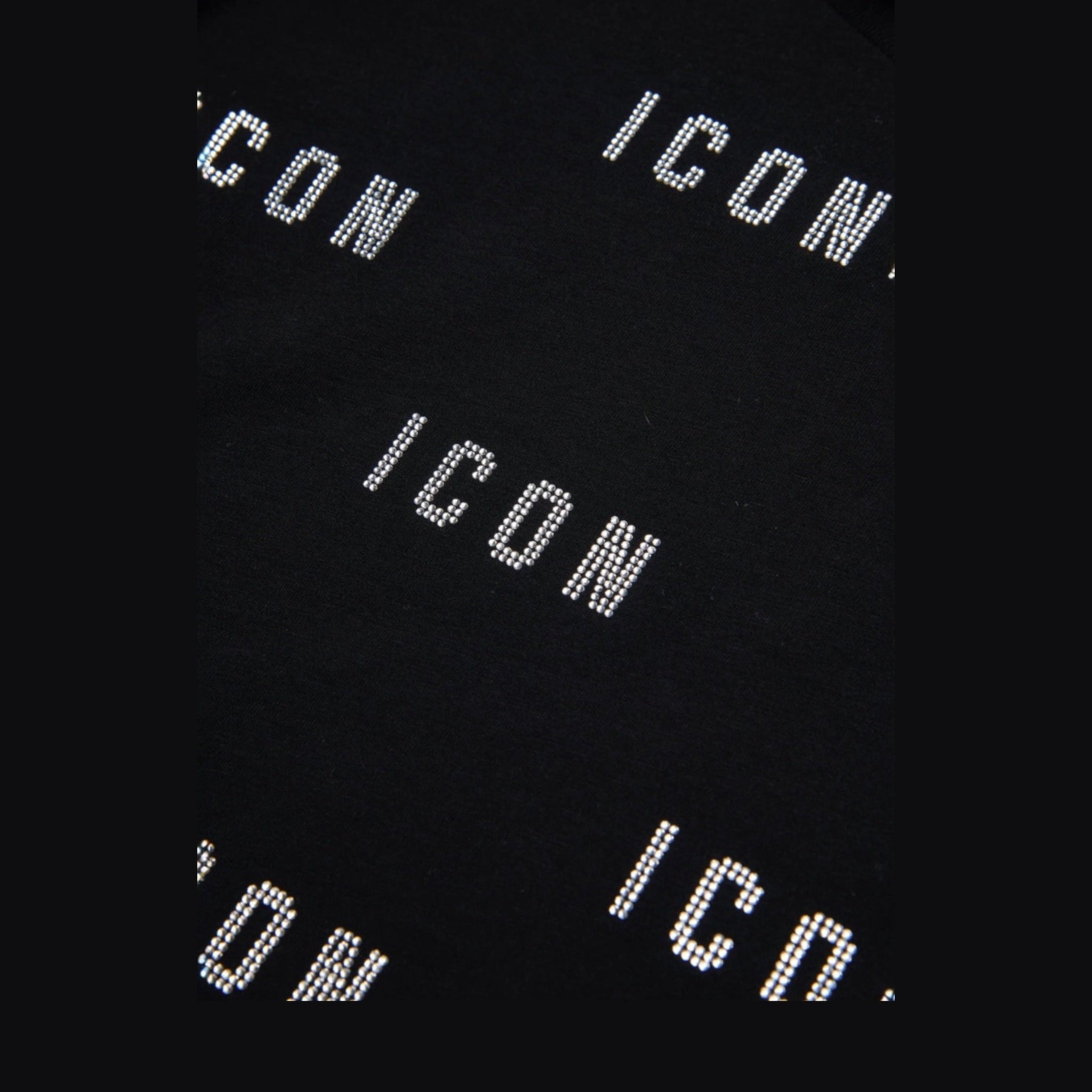 Presenta un logo ICON in cristalli ripetuto su davanti.