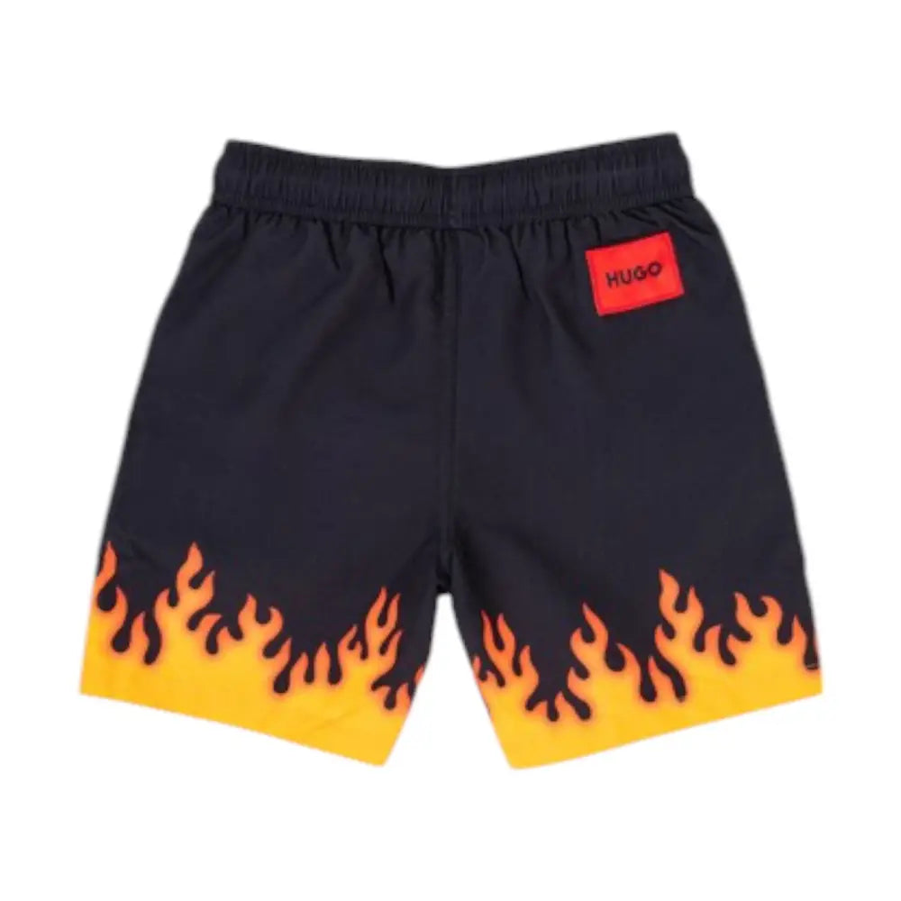 I bermuda HUGO sono perfetti per una giornata in spiaggia. La comoda vita elasticizzata si regola grazie alla coulisse a contrasto con estremità in metallo firmate. Il monogram bicolore decora tutto il capo. Venduti nella propria custodia con cerniera.