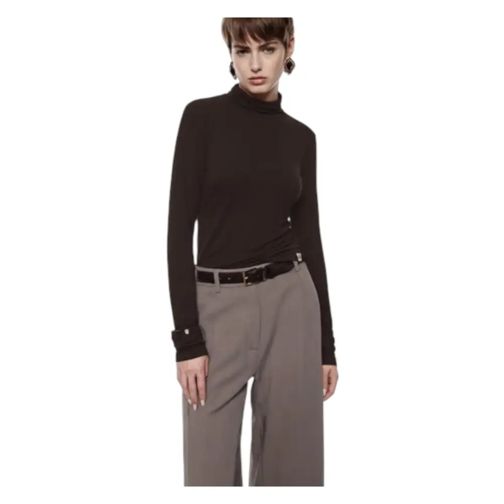 Maglia a maniche lunghe con collo alto, caratterizzata da una vestibilità regular che valorizza la silhouette senza costringere. Il design senza tempo e le finiture essenziali permettono di abbinarla facilmente a diversi outfit, offrendo una base versatile per l’espressione personale quotidiana.