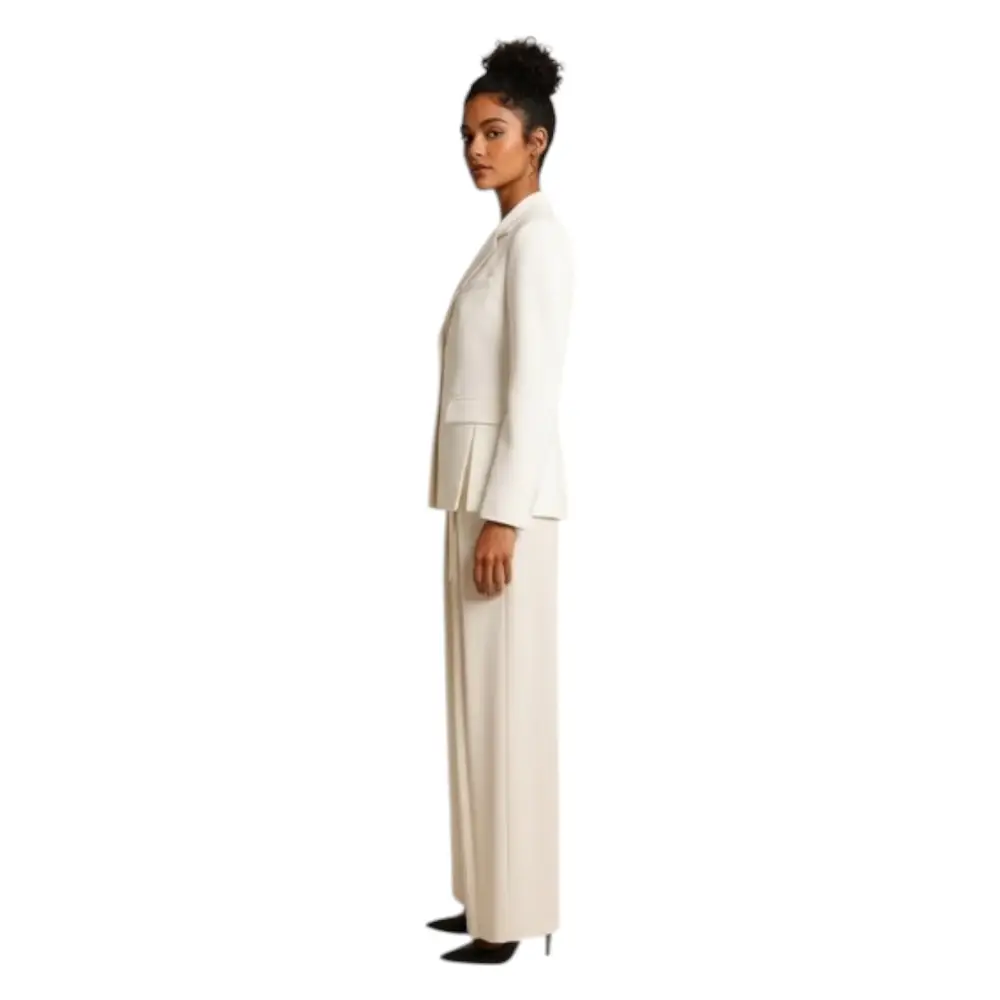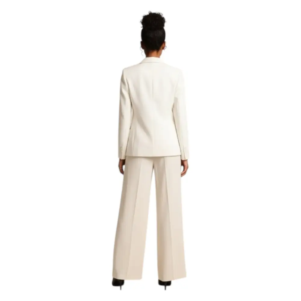 Questi pantaloni palazzo a vita alta sono la scelta ideale per chi desidera un look raffinato e contemporaneo. Le pince frontali donano struttura e slancio alla silhouette, mentre la linea ampia e fluida regala movimento e un’eleganza naturale.
