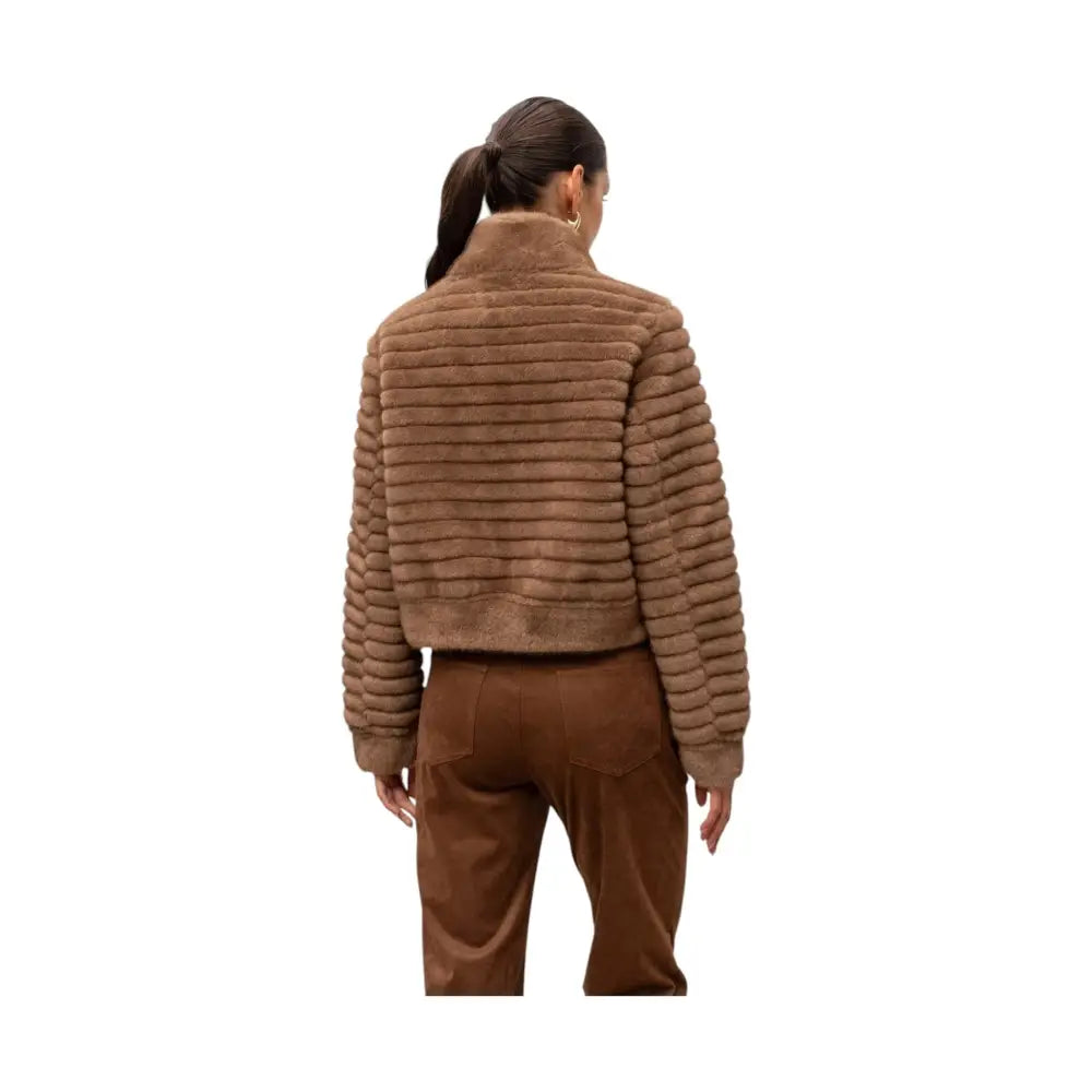 Categoria: Cappotto corto in pelliccia sintetica a bande orizzontali