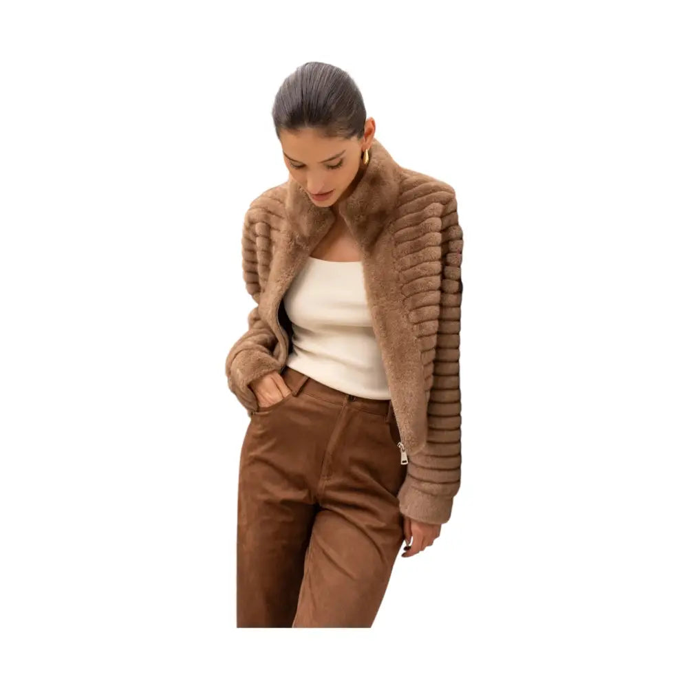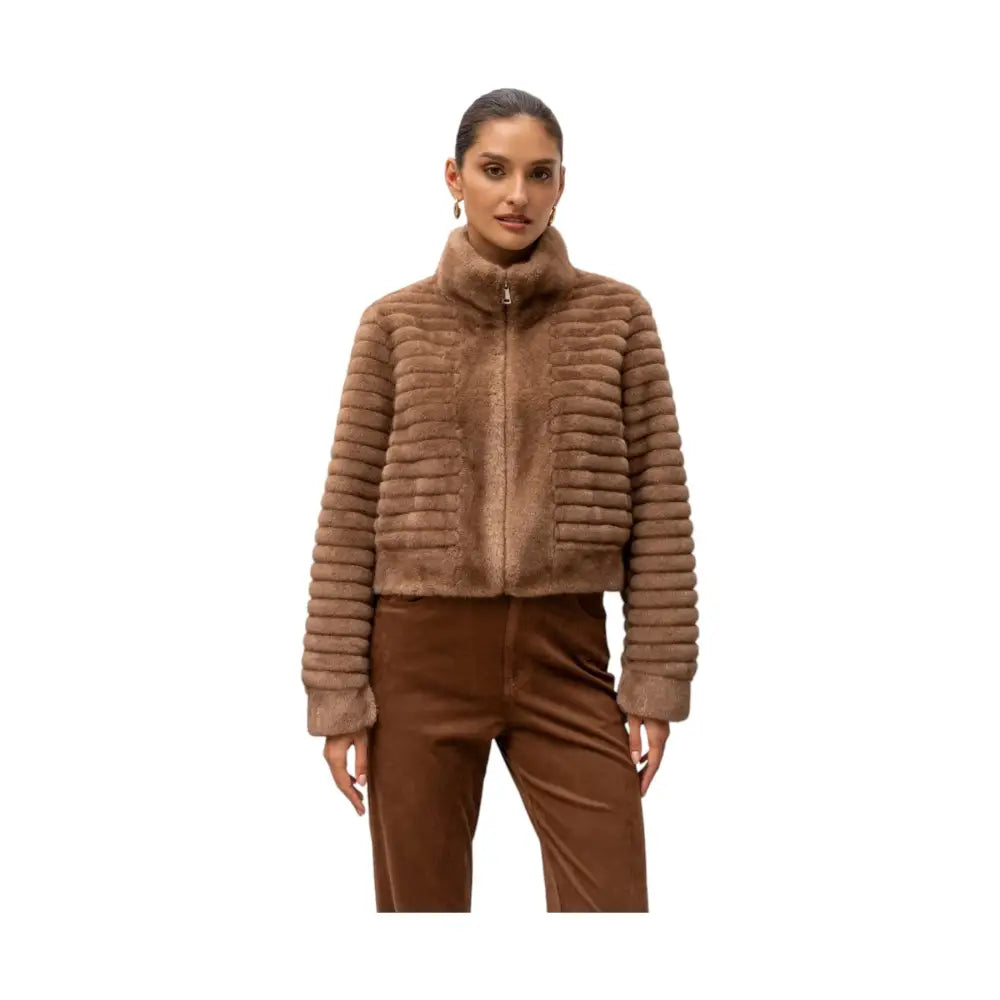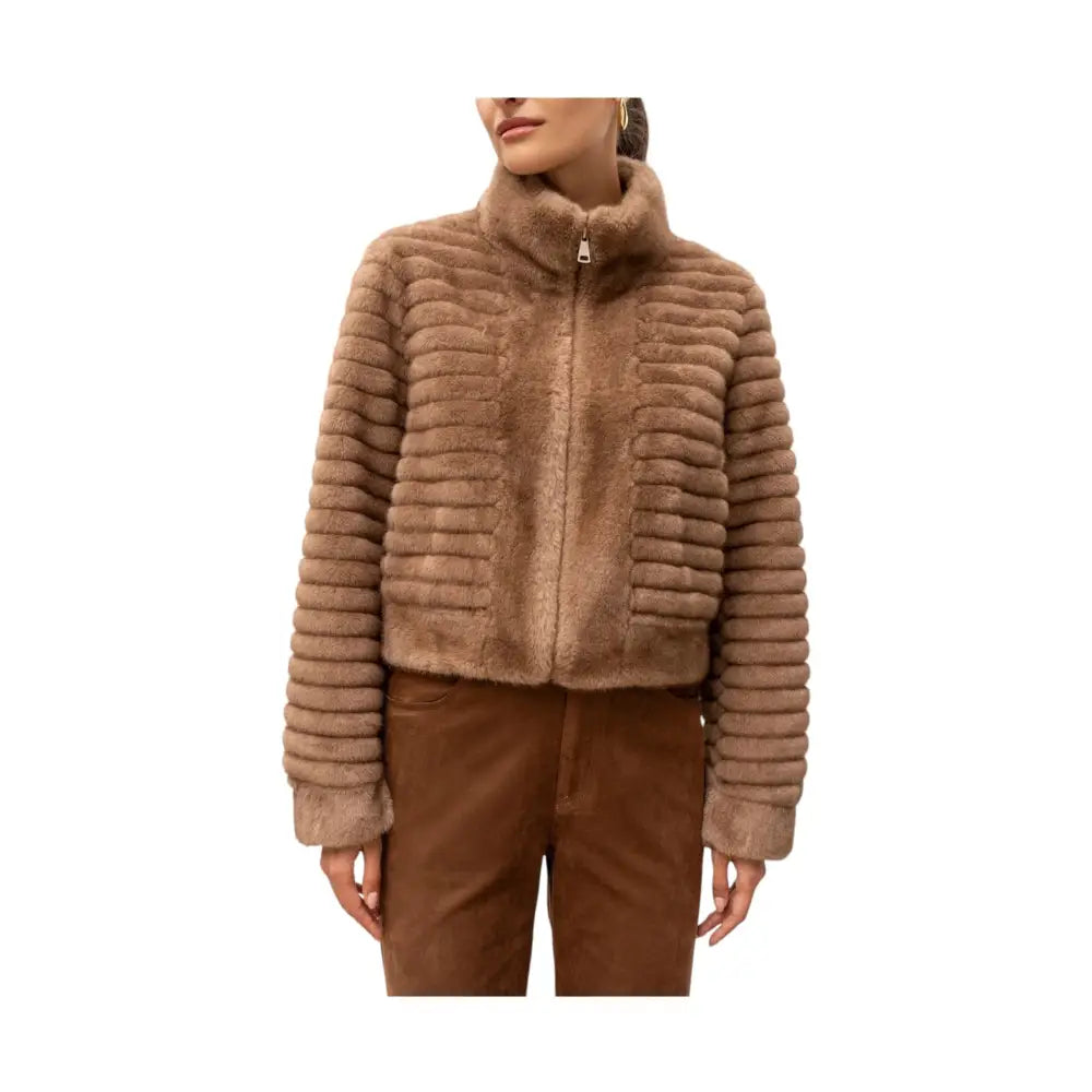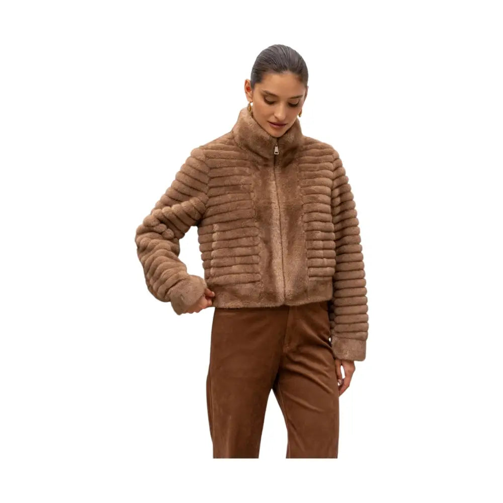 Cappotto corto in pelliccia sintetica a bande orizzontali Donna Attentif Paris Attentif Paris