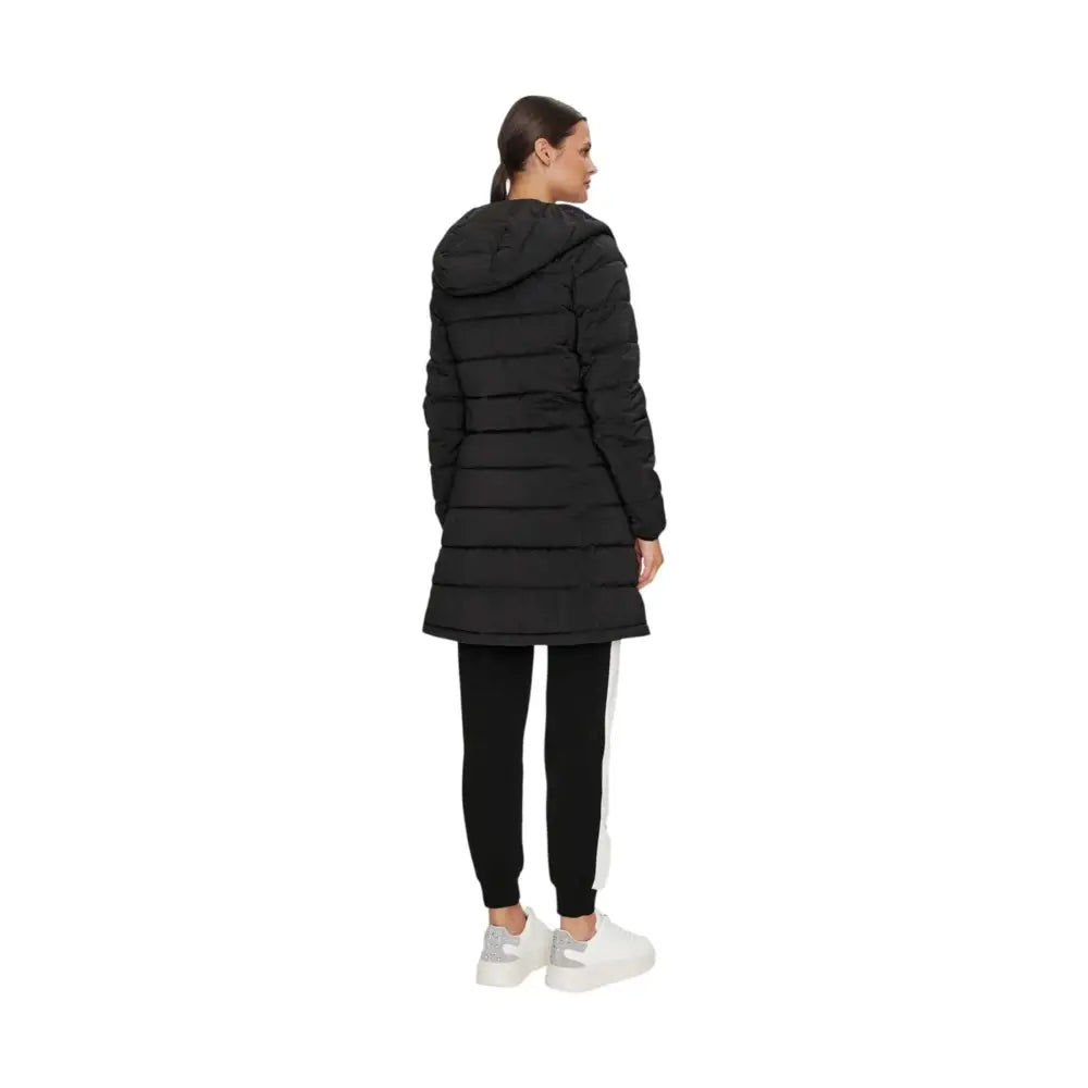 Piumino con cappuccio non staccabile., chiusura con cerniera, logo triangolare in metallo sul petto. Maniche lunghe con fondo elasticizzato,tasche