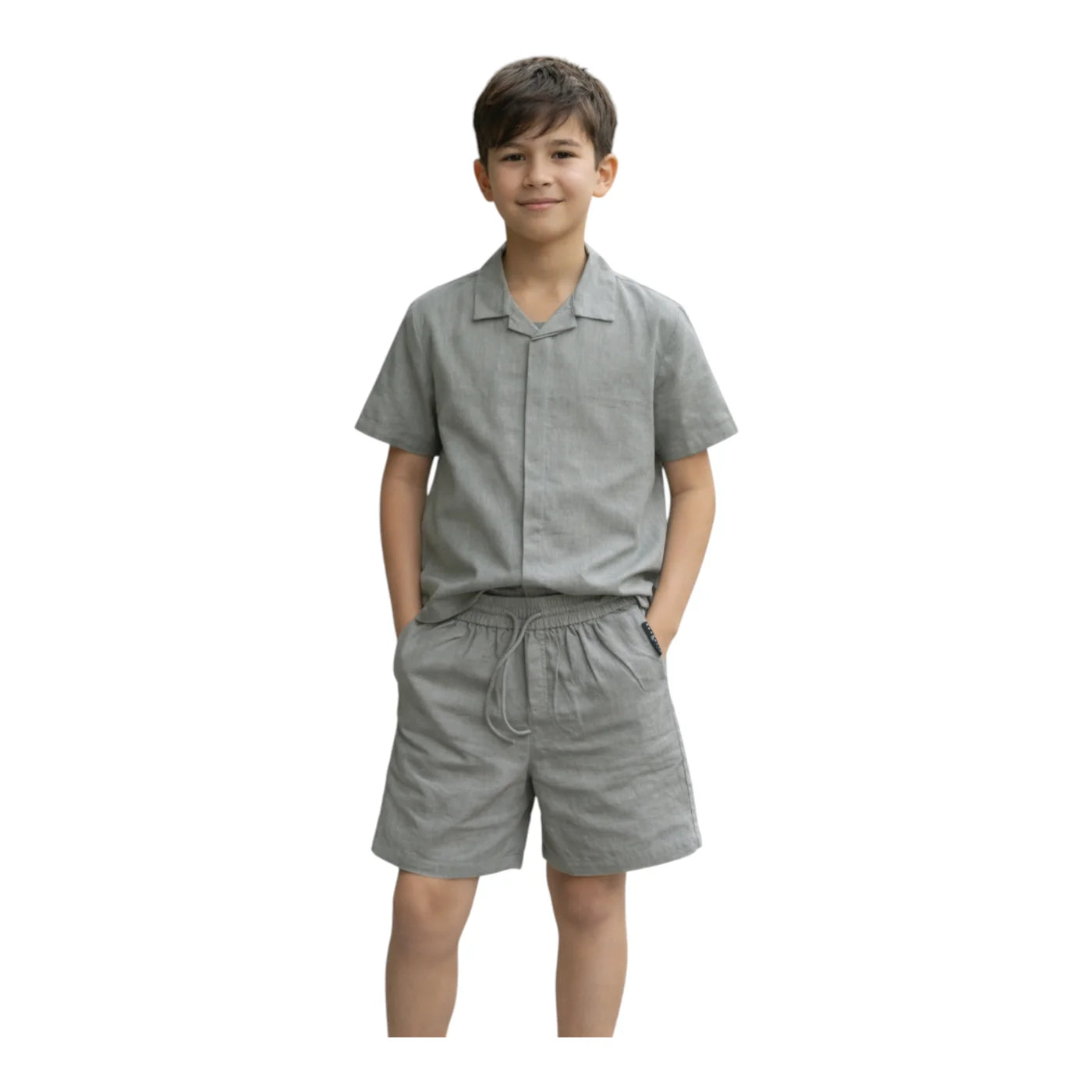 colore GrigioEsagogenere Bambinomateriale LinoSS26 Completo t-shirt e bermuda Bambino Grigio Richmond