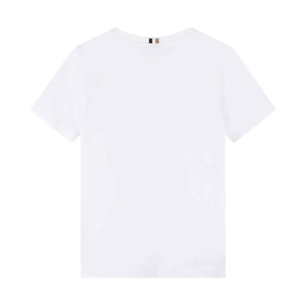 Questa t-shirt BOSS con taglio dritto è realizzata al 100% in cotone a tinta unita. Il modello a maniche corte con girocollo in bordo a coste elasticizzato.