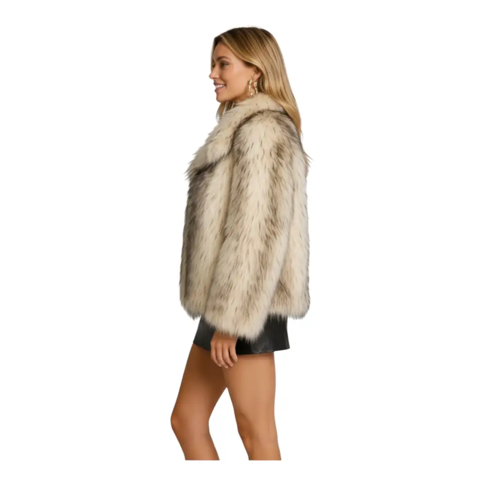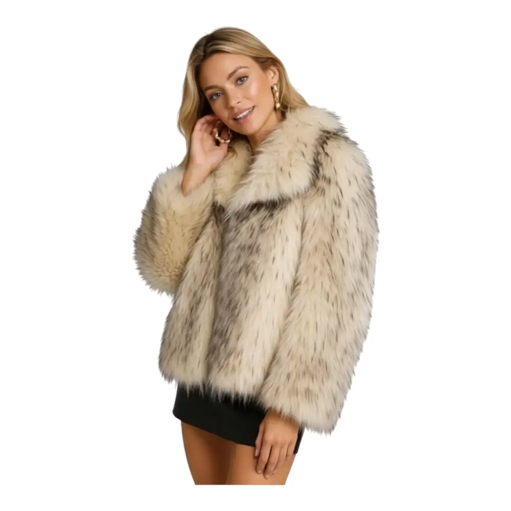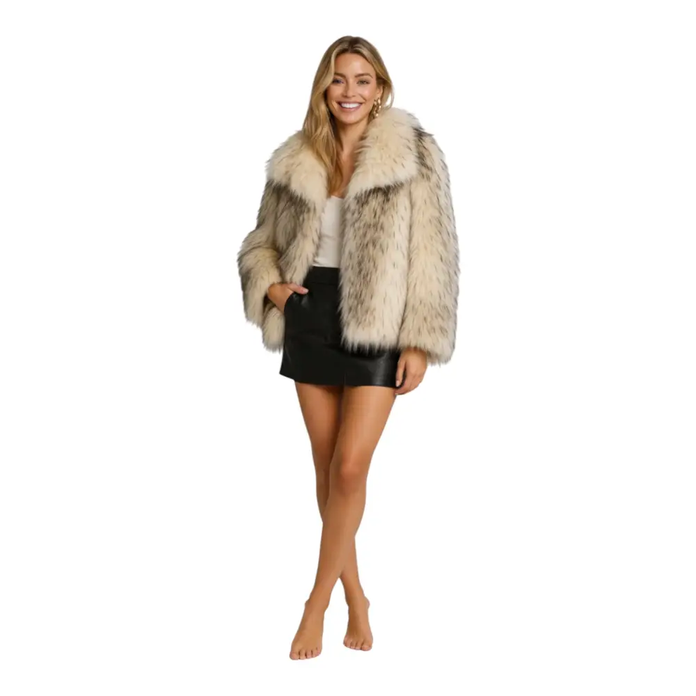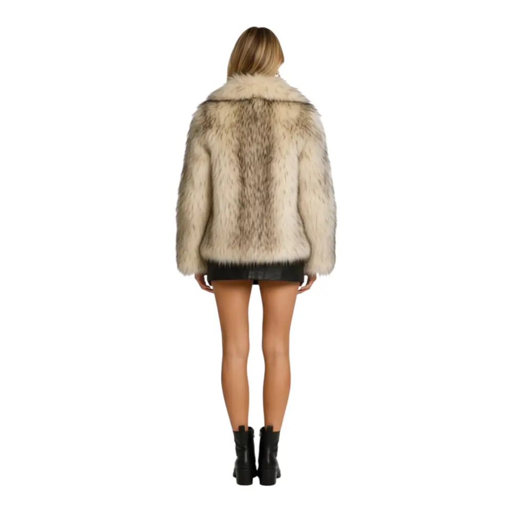 Il piumino in finta pelliccia Donna Frime, composto da 60% acrilico e 40% poliestere, è un capo iconico che unisce comfort e fascino glamour.