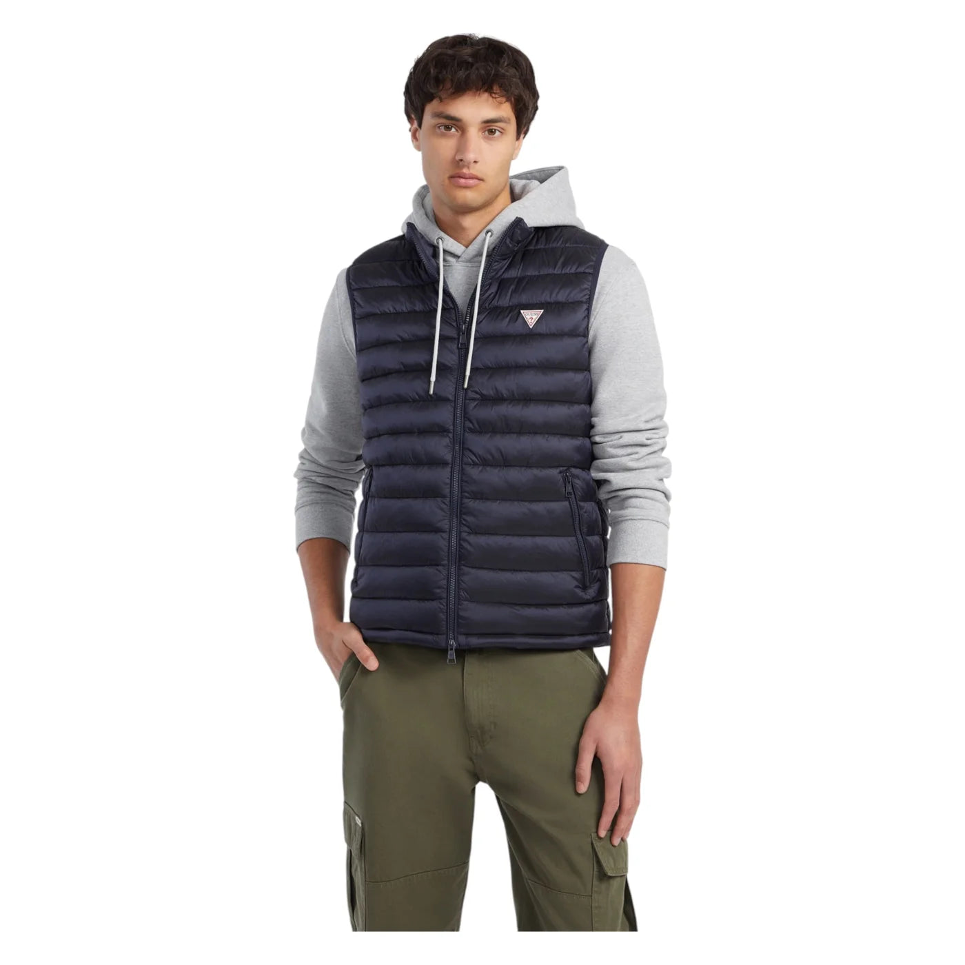 Guess Jeans gilet. Modello leggermente isolato realizzato in materiale trapuntato. Il modello con maggiore impermeabilità, perfetto per condizioni climatiche difficili.