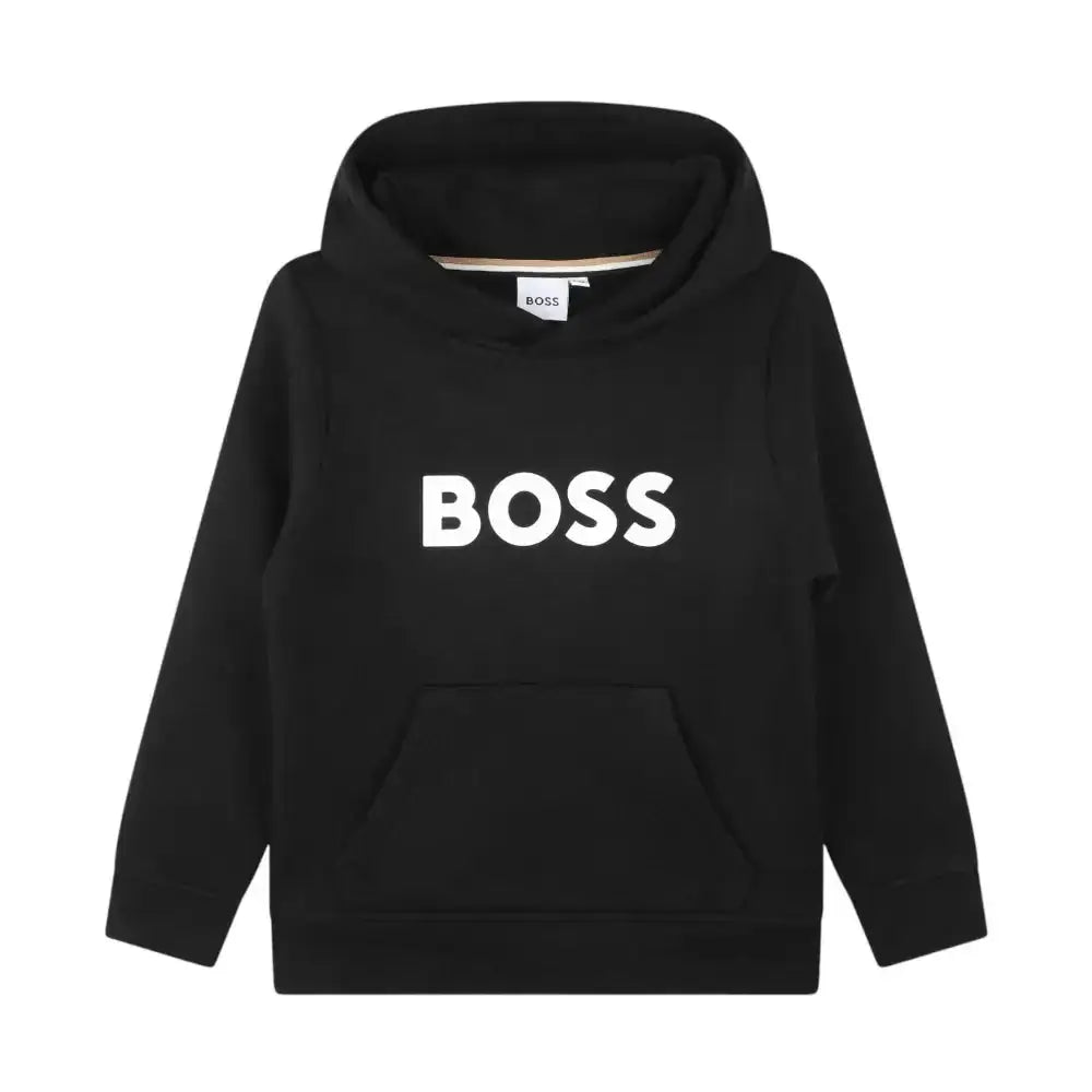 Questa felpa con cappuccio BOSS per bambini è realizzata in cotone, poliestere ed elastan per il massimo comfort. Si distingue per il taglio dritto e la tasca marsupio e sfoggia il logo BOSS stampato sul davanti.