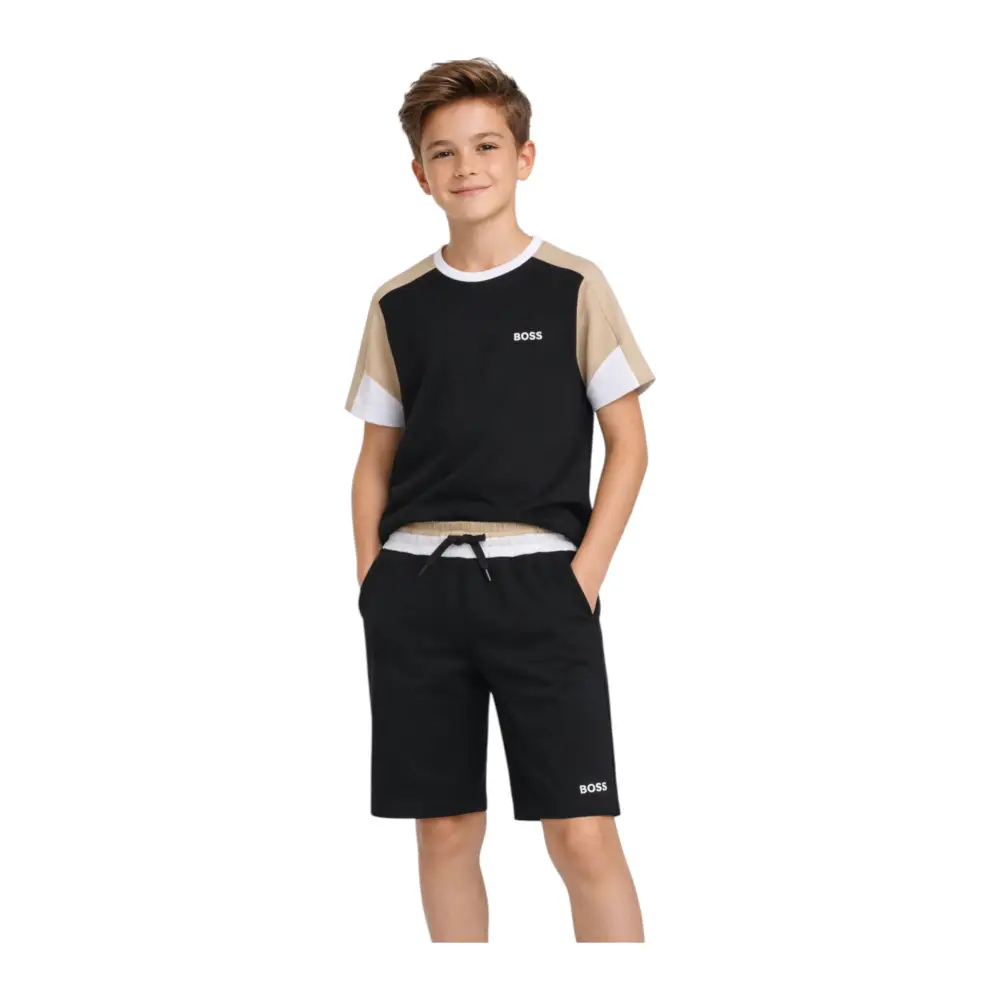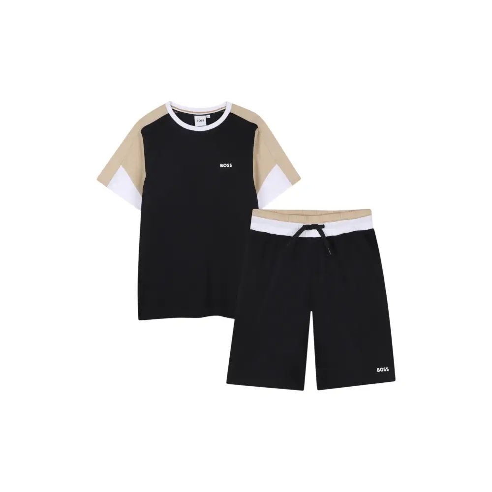 Completo T-shirt + bermuda Hugo Boss Bambino Nero