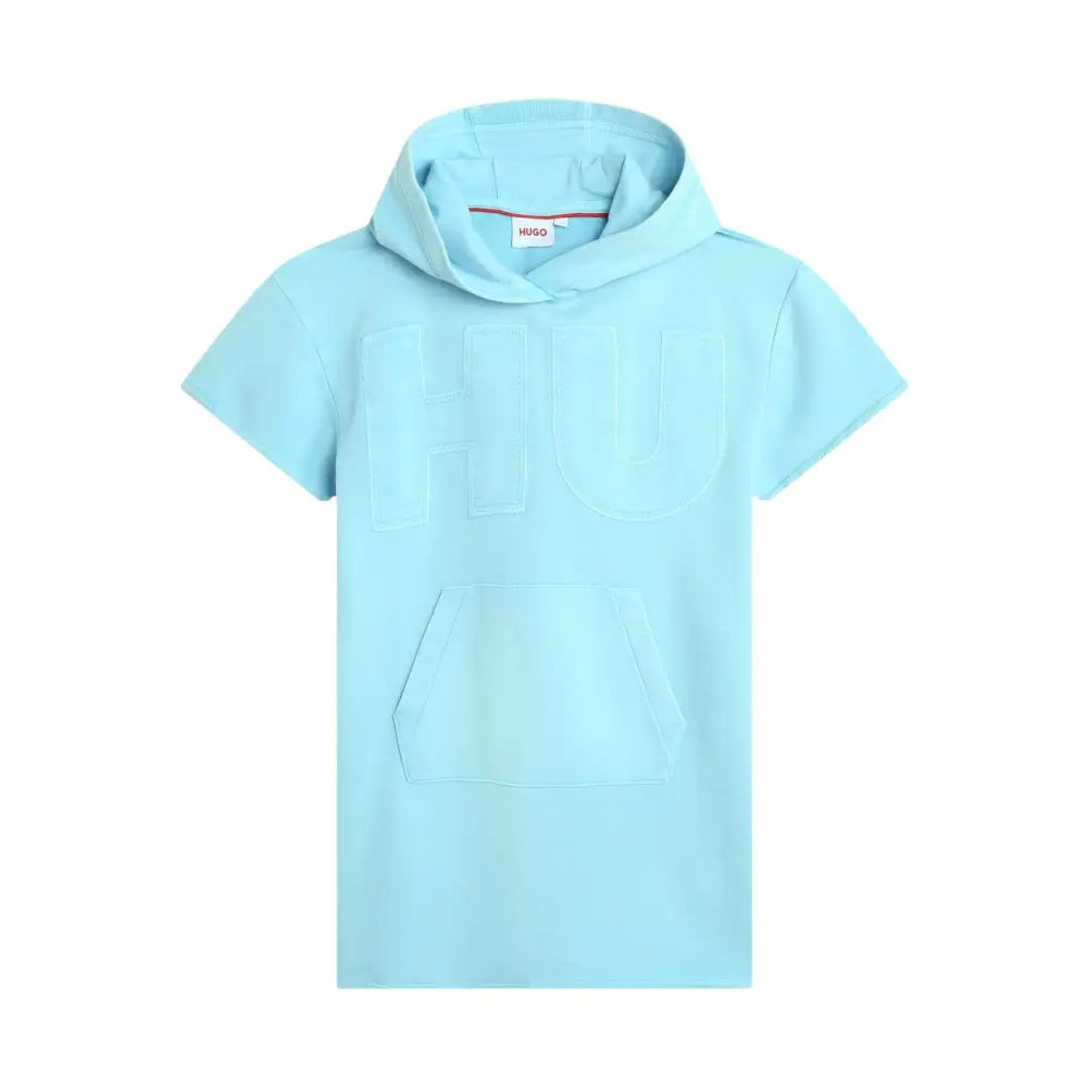 Questo abito HUGO in felpa délavé sovratinto affascinerà le bambine con il suo cappuccio e la vestibilità confortevole. Dotato di maniche corte e di una tasca a marsupio, è ornato dal logo applicato sul davanti e sul retro.
