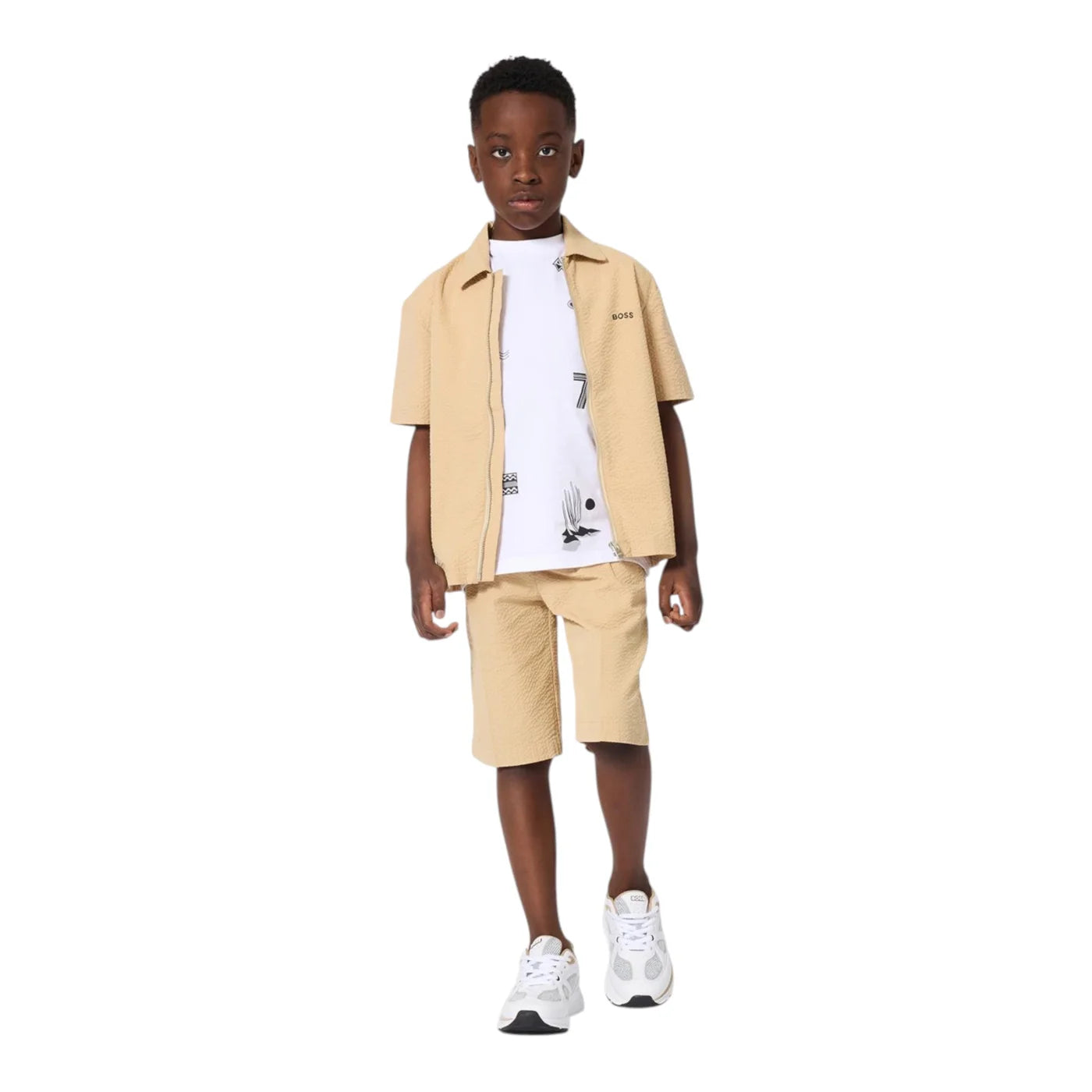 Raffinata e casual, questa camicia seersucker a maniche corte di BOSS è un must per i trendsetter alle prime armi. La cerniera aggiunge un tocco moderno, mentre il logo BOSS sul petto trasmette l'eleganza di uno stile audace. Perfetto per giornate di sole o momenti rilassati con gli amici, questo pezzo unisce comfort e stile, facendo brillare ogni bambino con stile.