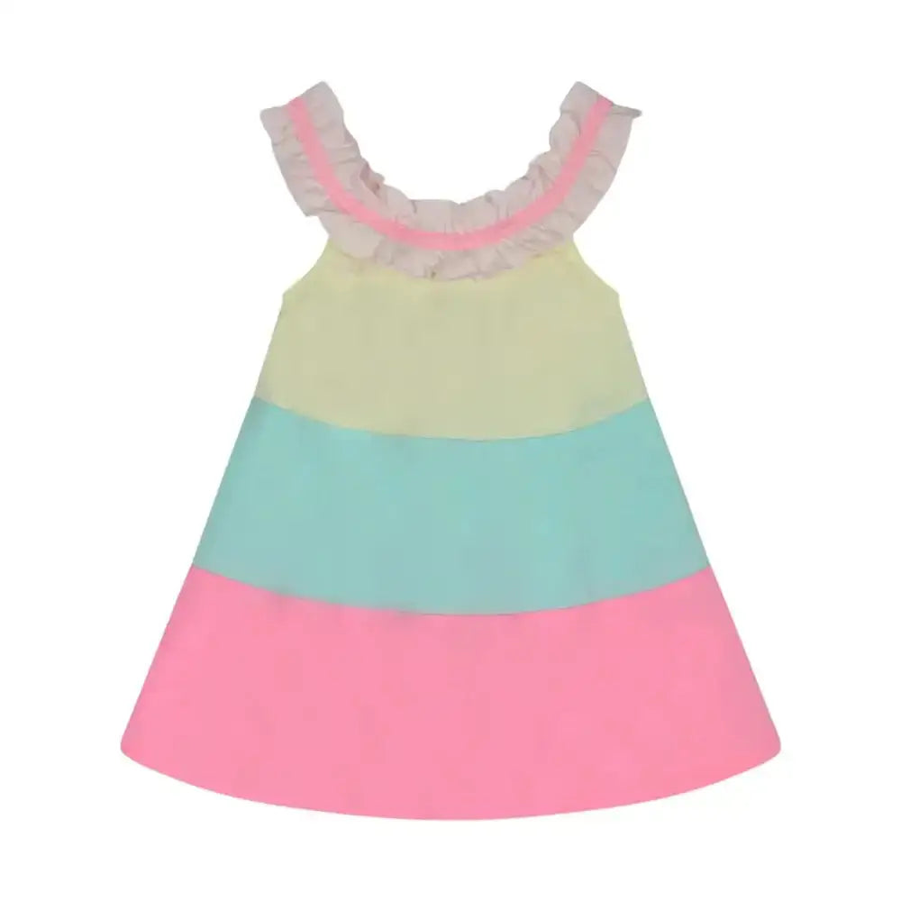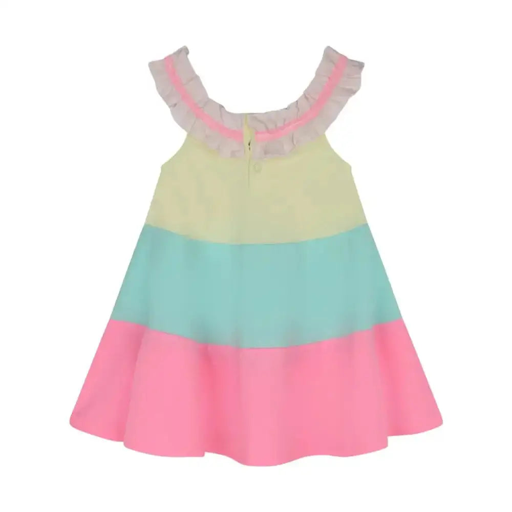 Questo grazioso vestito Billieblush senza maniche viene venduto con bloomer assortito, per un completo armonioso. Dispone di chiusura a pressione sul retro e di scollo con volant ed elastico fantasia. Bloomer: culotte a sbuffo.