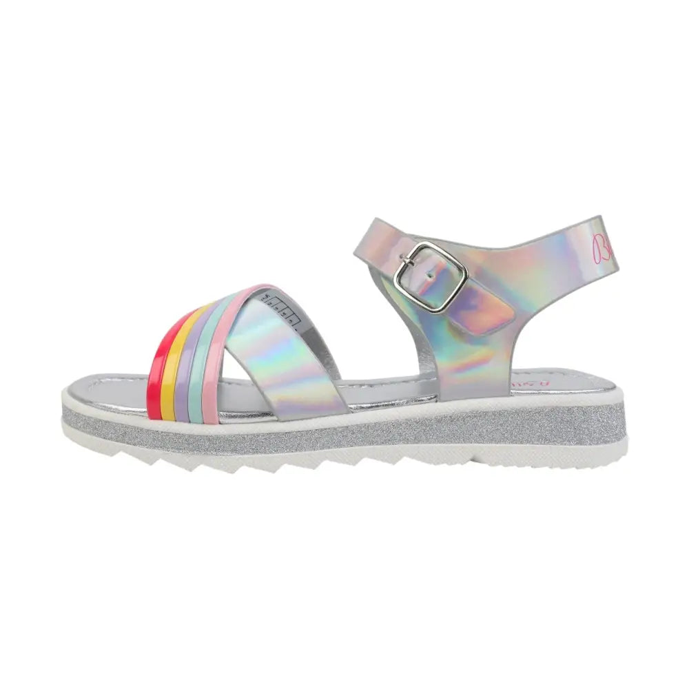 Dotati di chiusura a strappo, questi sandali Billieblush donano un tocco di originalità a qualsiasi outfit con il loro look iridescente. Il sottopiede è realizzato in pelle di capra conciata al minerale. Il modello è venduto in scatola per scarpe. Contiene parti non tessili di origine animale.
