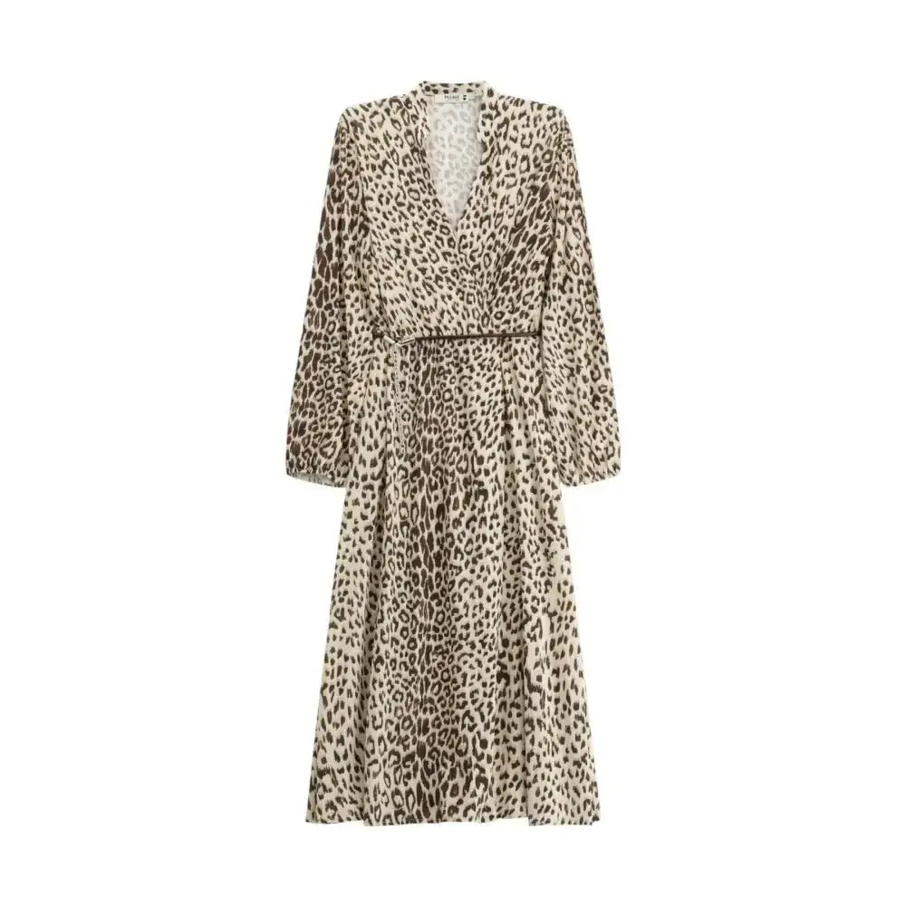 Perfetto per chi vuole distinguersi anche nella giungla urbana, questo abito midi con stampa animalier e cintura sottile in vita. Le maniche lunghe e lo scollo a v donano un look dinamico che si adatta a tutte le avventure quotidiane, dalla passeggiata in città al brunch tra amiche, sempre con stile personale e grinta.