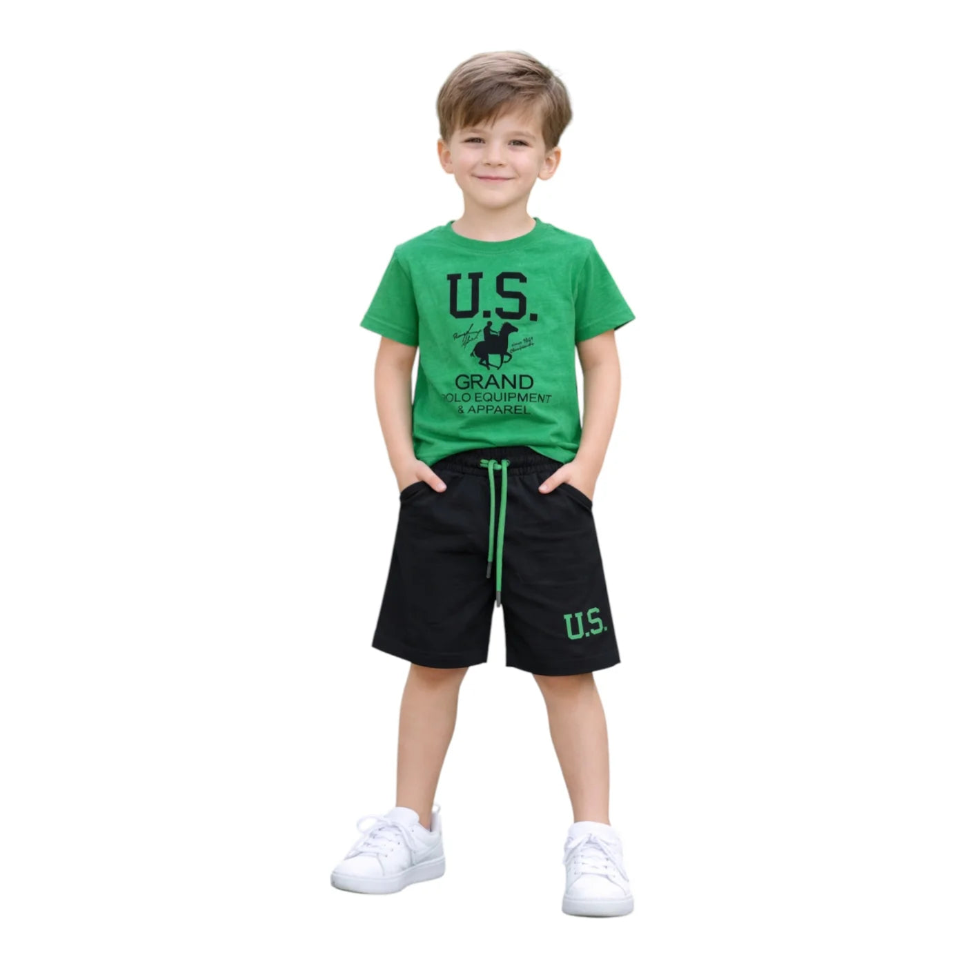 Il completo t-shirt e bermuda US Grand Polo è la scelta ideale per vestire i bambini con comfort e stile nelle giornate più calde. Composto da t-shirt e bermuda coordinati, è perfetto per accompagnarli durante il gioco, lo sport e il tempo libero.