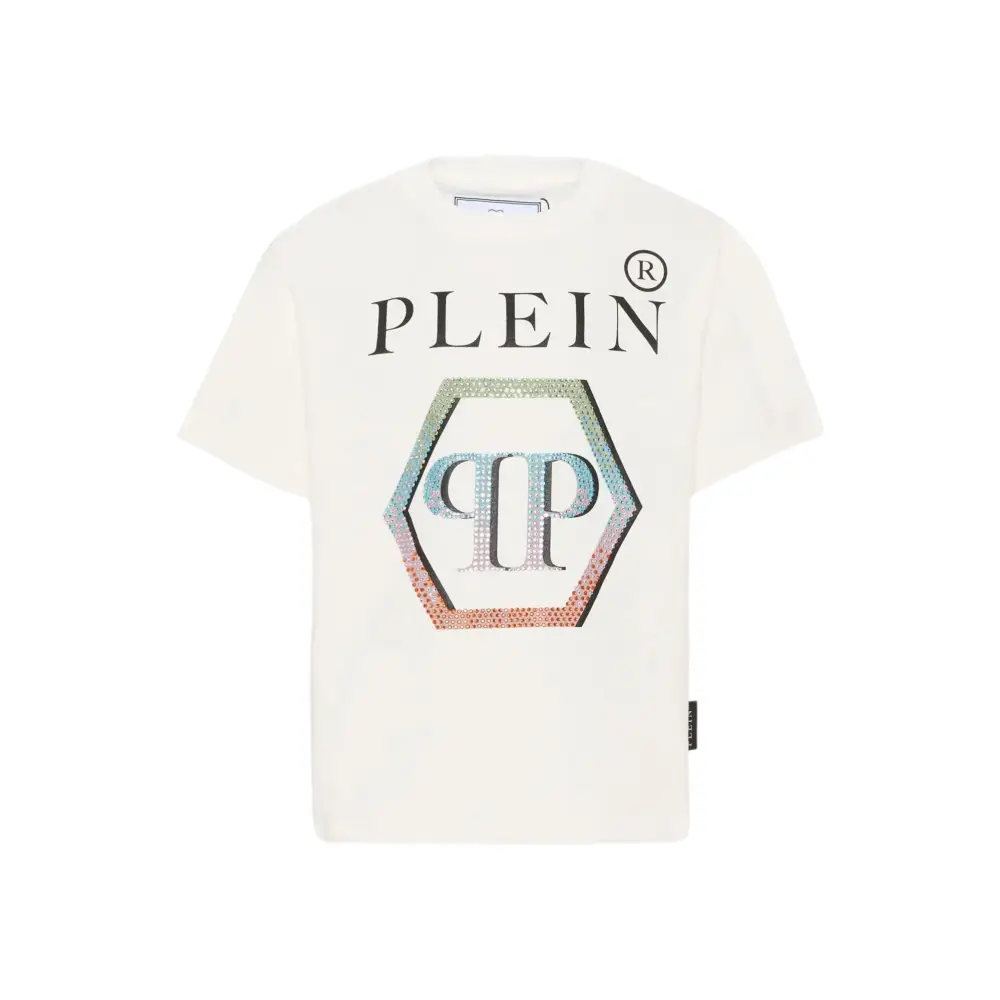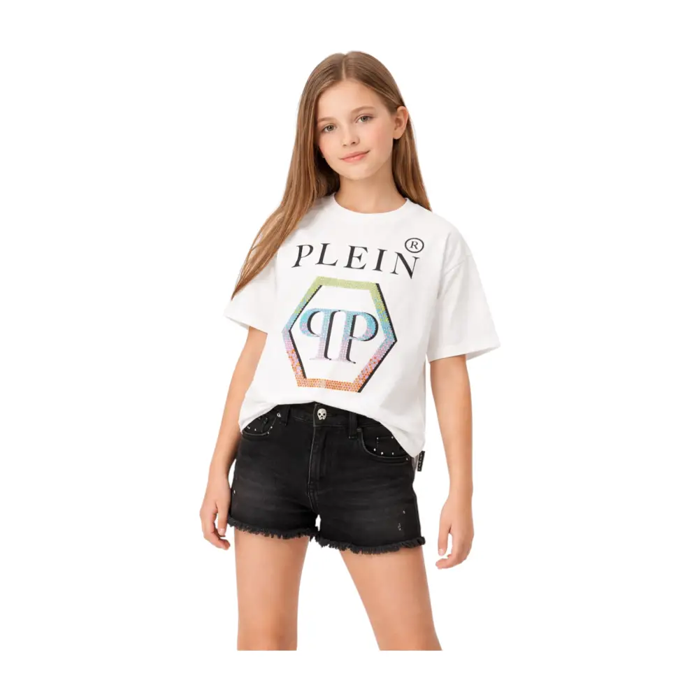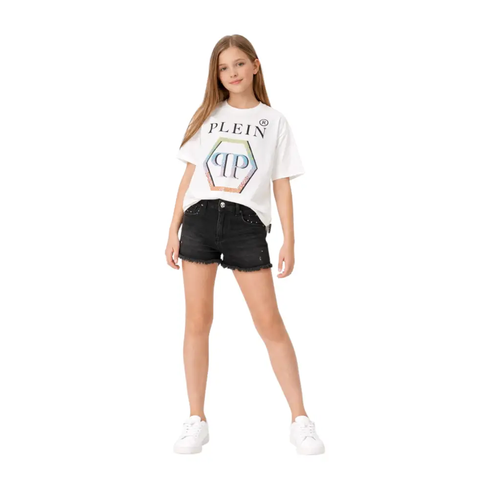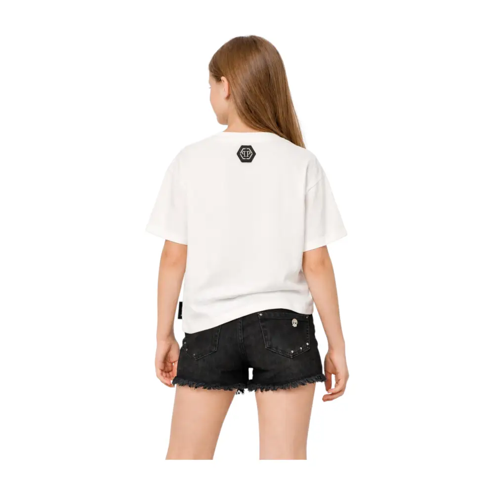 T-shirt con logo strass Philipp Plein Bambina Bianco