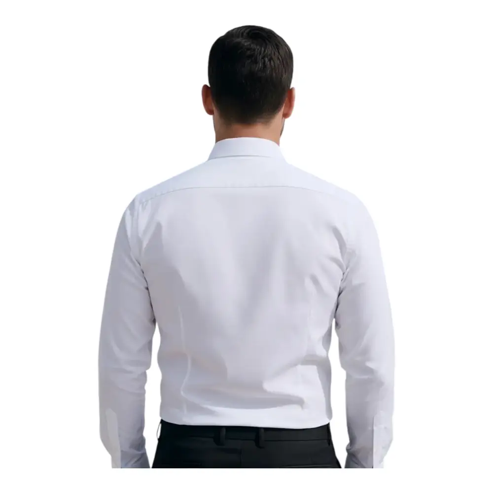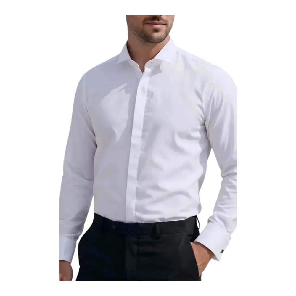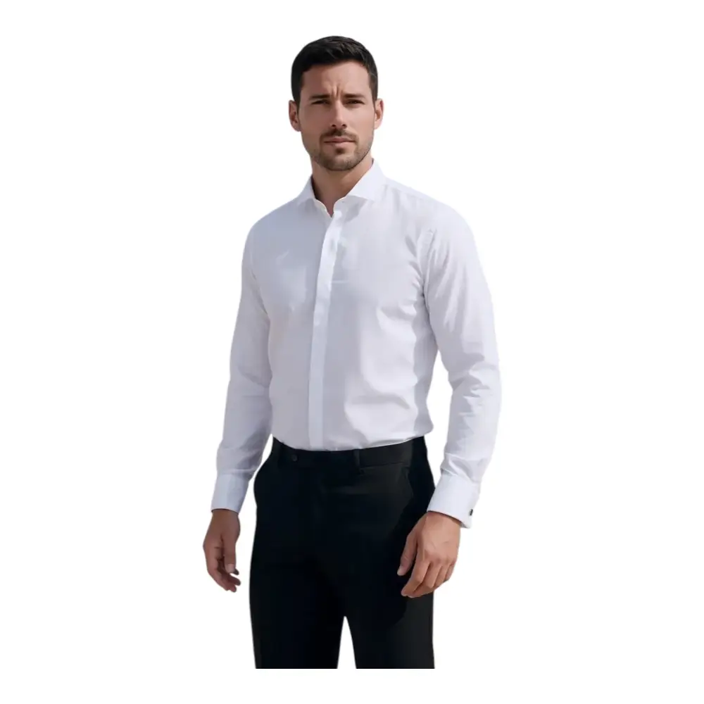 Categoria: Camicia slim fit bianca con colletto diviso e polsini da moschettiere