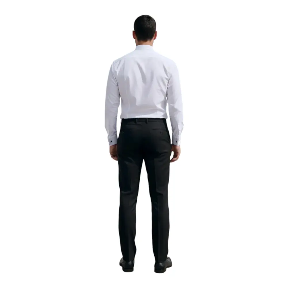 Il taglio aderente valorizza la silhouette con una linea moderna e raffinata, ideale per un look impeccabile sotto abito o smoking.