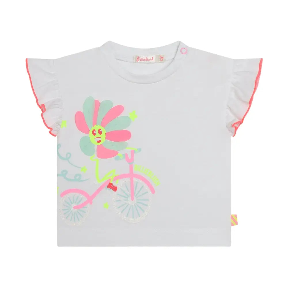 Questa t-shirt Billieblush a maniche corte con volant e girocollo è perfetta per accompagnare le belle giornate. Il modello dispone di chiusura a pressione sul retro ed è realizzato in 100% cotone proveniente da agricoltura biologica.