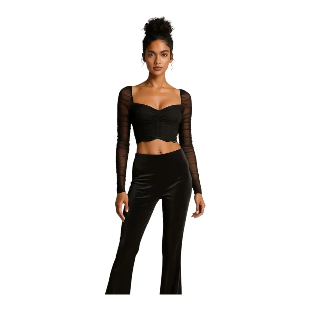 Il velluto, morbido e brillante, dona un effetto sofisticato ideale per creare look ricercati, perfetto da abbinare a camicie eleganti, top luccicanti o maglioni morbidi.