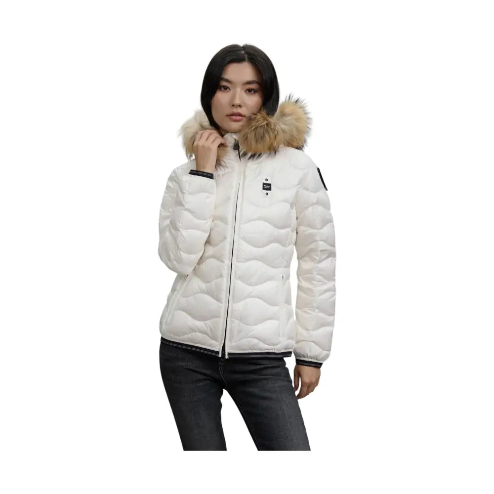 Piumino idrorepellente trapuntato ad onde orizzontali e con profilo del cappuccio in vera piuma. Capo iconico Blauer con imbottitura naturale, calda e non ingombrante, per essere sempre alla moda.