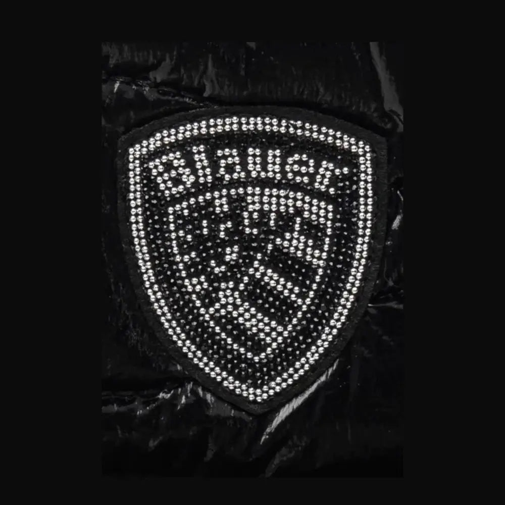 Zaino Blauer Wave03 da donna in tessuto trapuntato a onde di nylon a finitura semilucida, versione small dal design stondato, a doppio scomparto e con tasca esterna chiusi da zip, logo scudetto frontale in micro strass, manico superiore e spallaci medi imbottiti regolabili in lunghezza