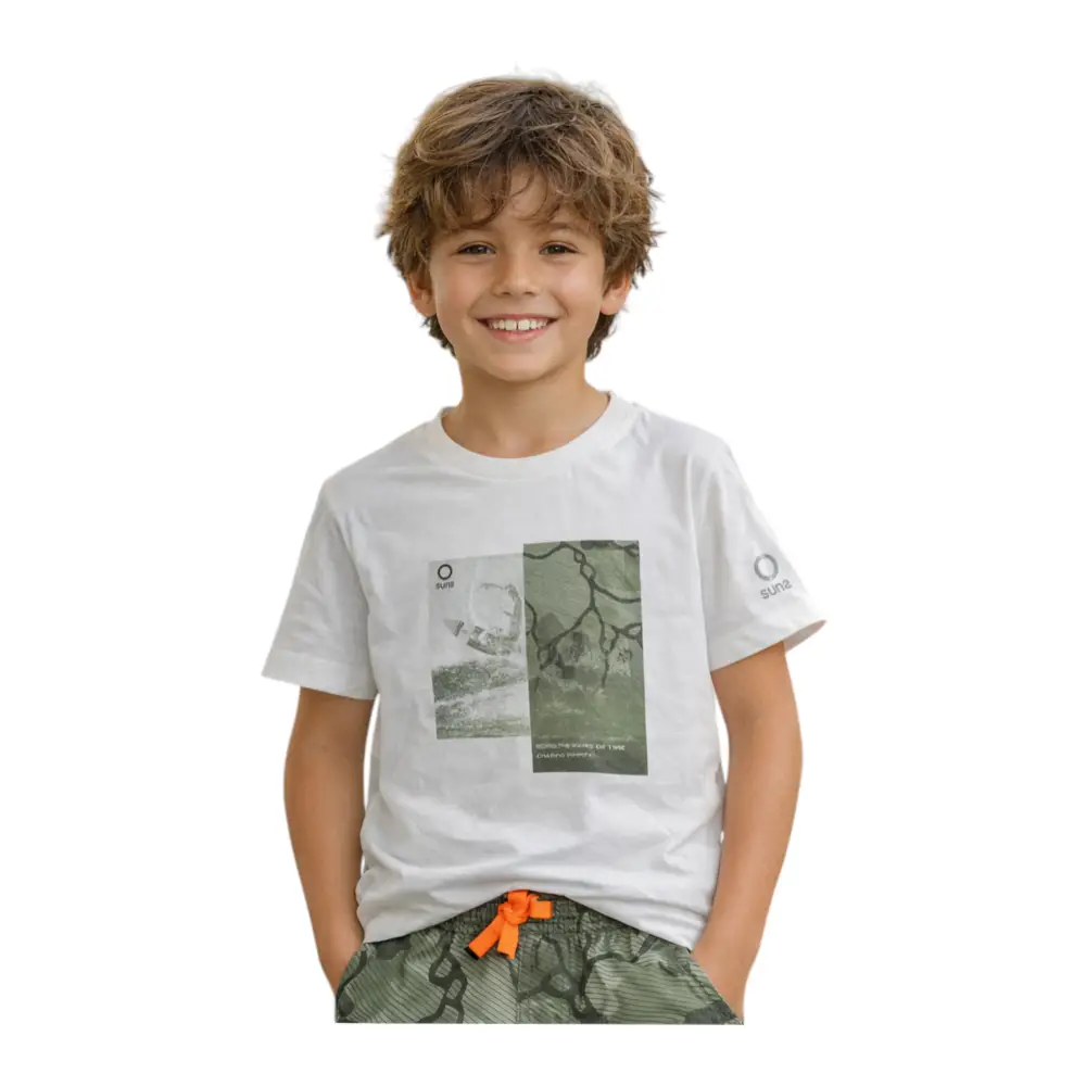Perfetta per la stagione primavera/estate, la T-shirt Suns Boards unisce qualità, comfort e stile in un unico capo pensato per i bambini attivi.