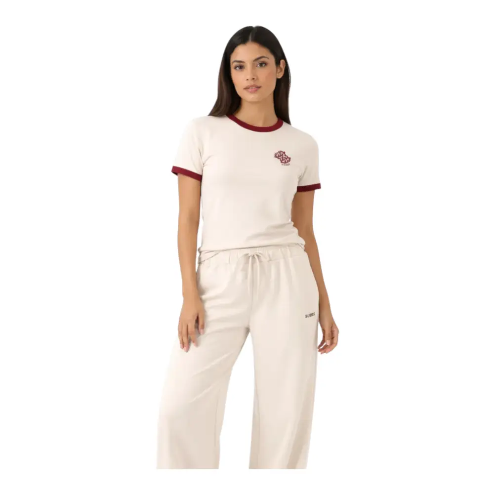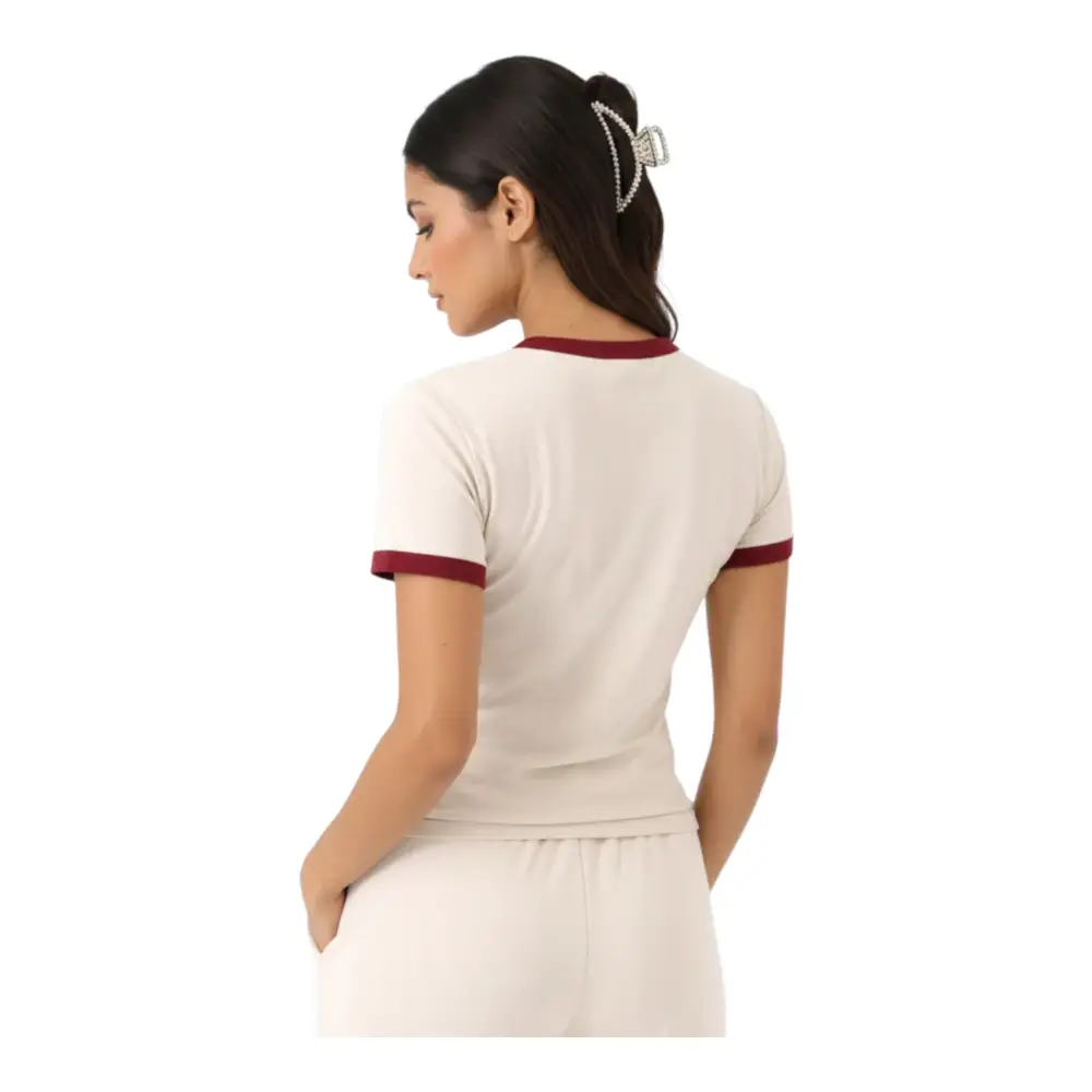 Il piccolo logo aggiunge un dettaglio discreto e distintivo, rendendo questa maglia ideale per outfit sportivi e casual dal gusto contemporaneo.
