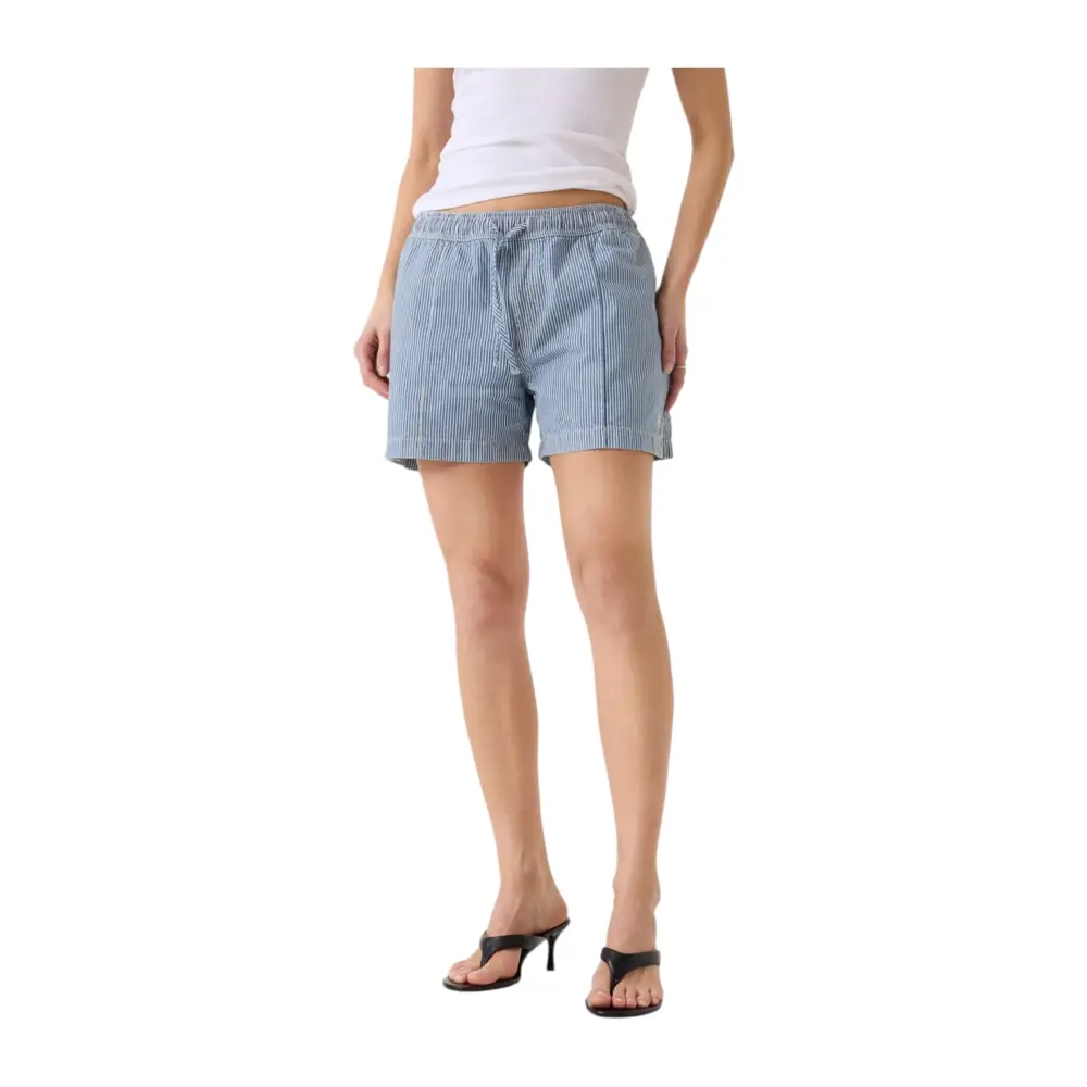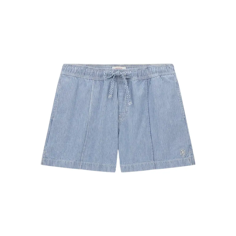 Il design presenta una vestibilità rilassata con vita elasticizzata e coulisse regolabile, che assicura una calzata comoda e adattabile. Il tessuto a righe sottili dona un tocco moderno e versatile, facile da abbinare con top, t-shirt o camicie leggere.