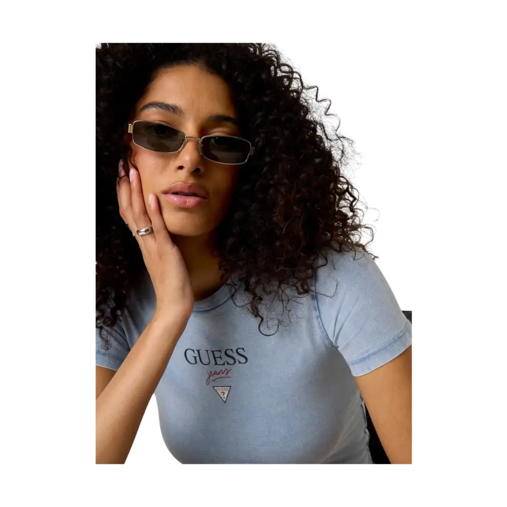 T-shirt crop con maxi logo Donna Guess Jeans