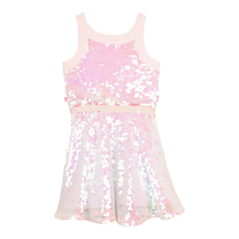 Questo abito BILLIEBLUSH con paillettes cattura la luce ad ogni movimento per un effetto magico. Senza maniche e foderato per il comfort, presenta una cintura elasticizzata che enfatizza la silhouette e un'apertura con cerniera sul retro per una facile infilazione. Un modello perfetto per brillare in occasioni speciali.