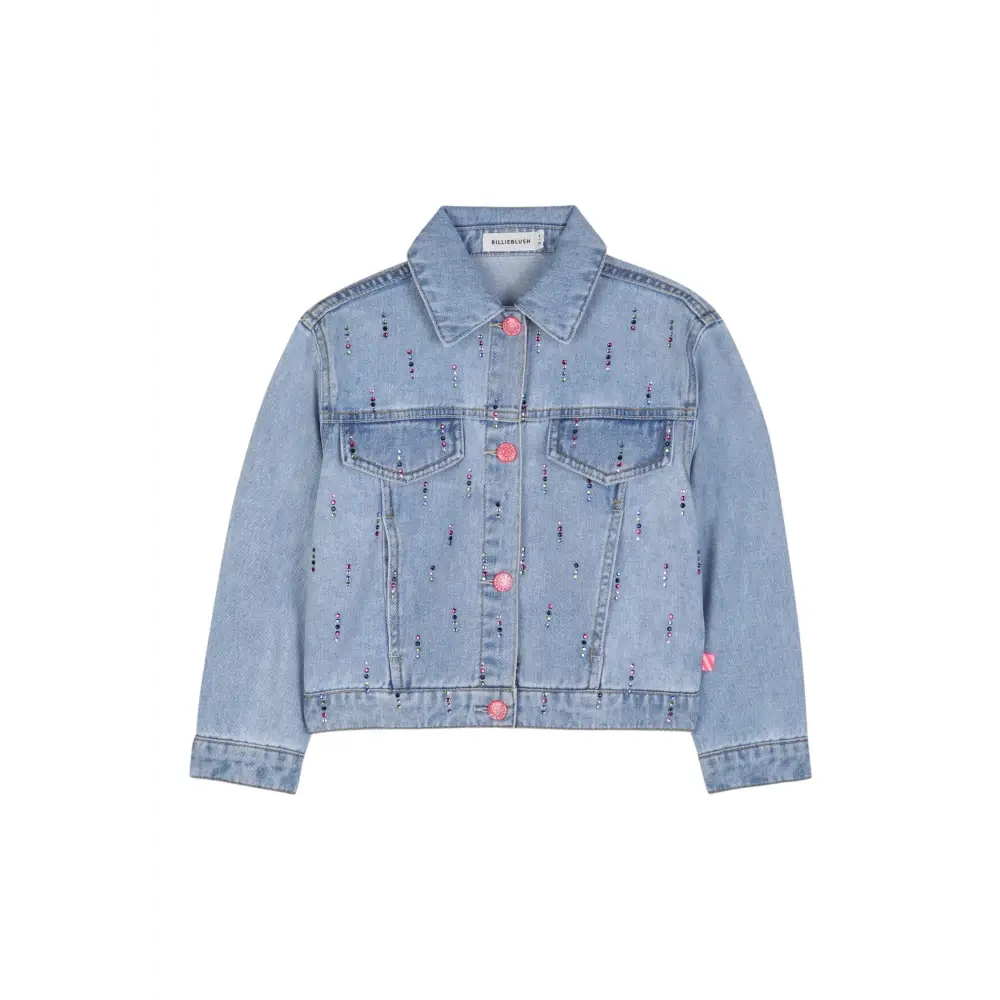 Questa giacca in denim BILLIEBLUSH è illuminata da borchie multicolori e bottoni brillanti. Un modello pieno di energia che dona un tocco originale e brillante a qualsiasi outfit.