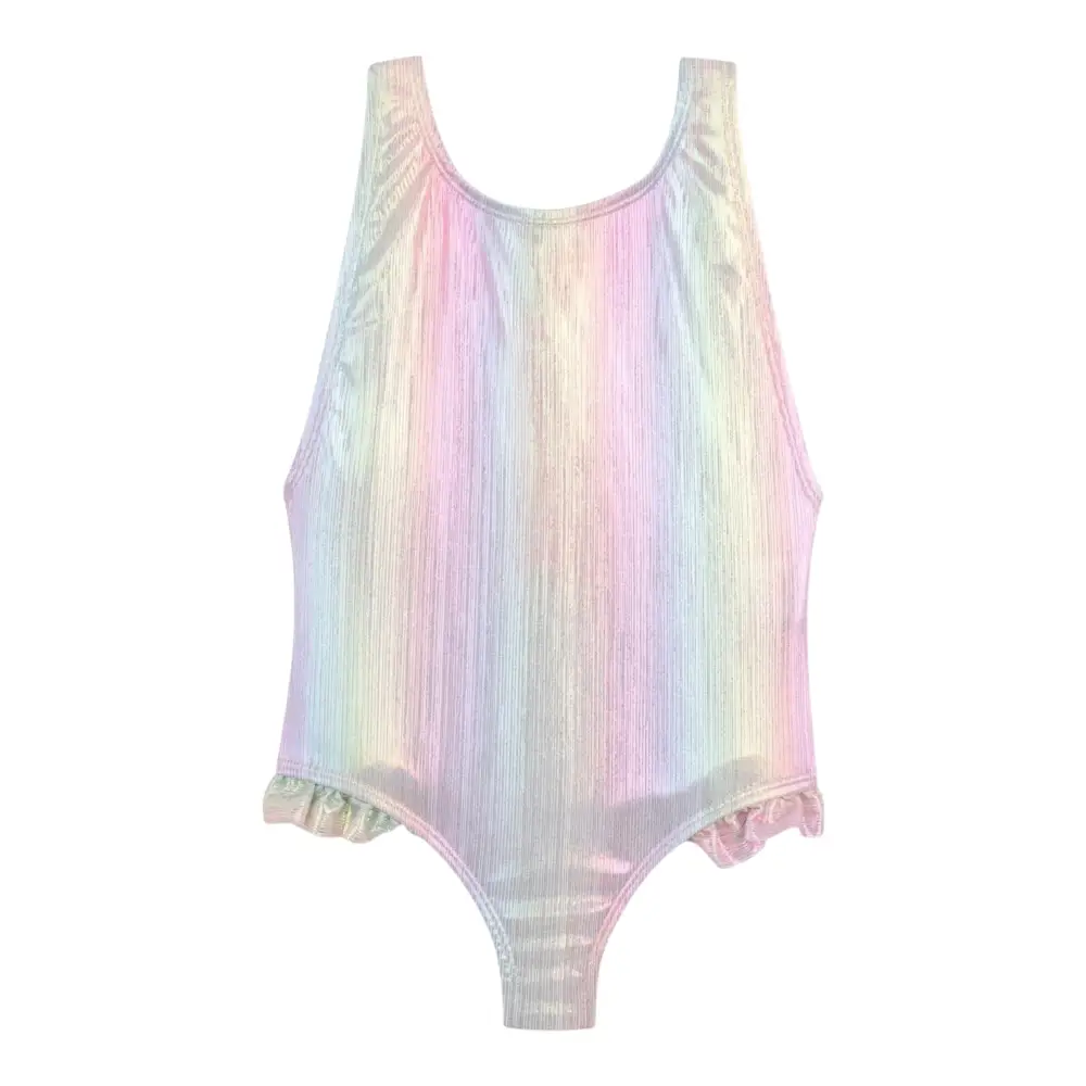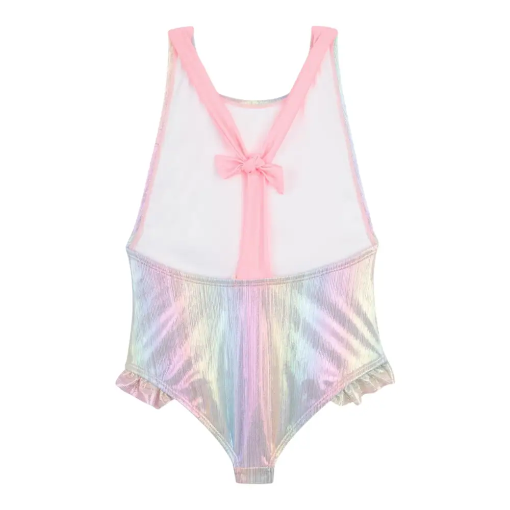 Divertimento estivo: Questo scintillante costume intero di BILLIEBLUSH impone uno stile giocoso. Bretelle a contrasto con fiocco civettuolo e volant laterali per una silhouette avida. Completamente foderato per il comfort dei piccoli avventurieri. Consegnata con la sua tasca abbinata, trasforma ogni viaggio in spiaggia in un momento chic e birichino. Amiamo il suo fascino scintillante.
