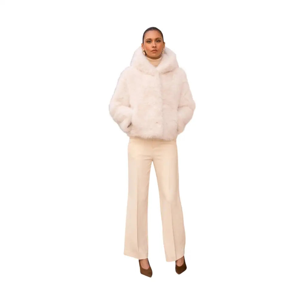 Cappotto corto in finta pelliccia a pelo lungo con cappuccio Donna Attentif Paris